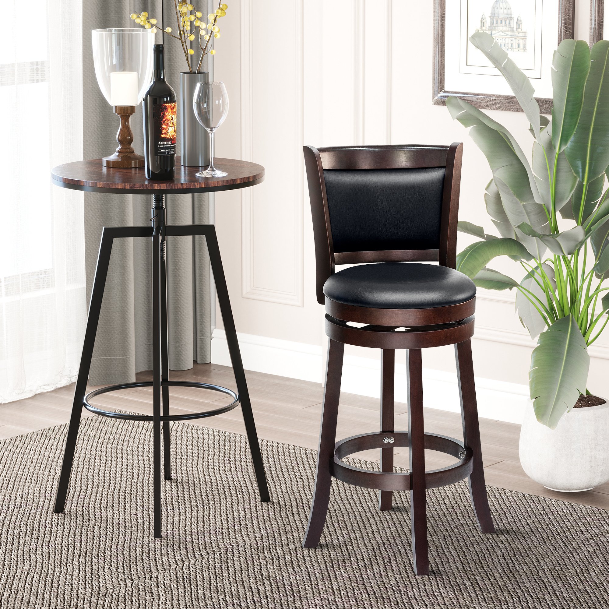 Cushioned Comfort: Its cushioned seat, comfortably padded with high-density foam and is covered with easy maintain PU leather, makes this upholstered swivel bar stool a comfortable space to sit on and grab a cup of coffee.