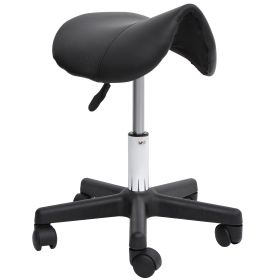 HOMCOM Rolling Saddle Stool, Swivel Salon Chair, Ergonomic Faux Leather Stool, Adjustable Height with Wheels for Spa, Salon, Massage, Office, Black