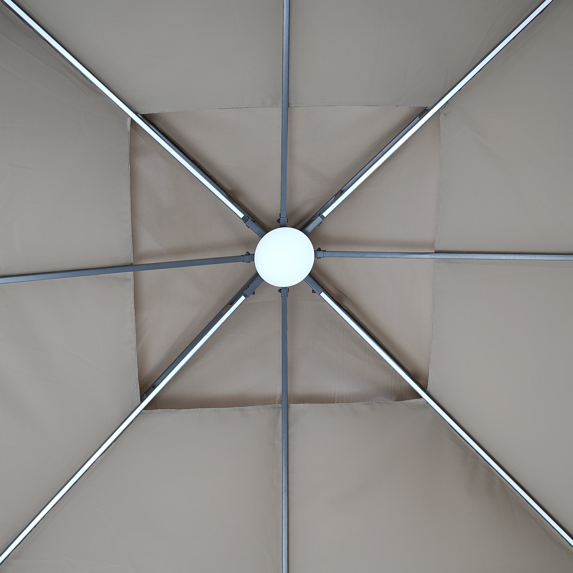 [LED Roof Light] Come with 4 built-in light guides in roof frame and Solar-powered light in top, this patio gazebo perfects for using not only in daytime but also night. All of the lights can be controlled by a button and 3 levels are available for roof light. Soft light creates a romantic atmosphere when night falls.Warm Notice: Lithium battery is not included. Please buy a cylindrical lithium battery 18650 in local area.